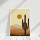 L'affiche Boho Burnt Orange Desert Landscape Poster avec lever du soleil, collines, désert et cactus est parfaite pour les maisons bohèmes.