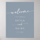 Cette enseigne d'accueil boho chic et bleu do-it-yourself mariage est parfaite pour un mariage minimaliste. Le design moderne et bohème, bleu clair neutre, présente une calligraphie rustique simple, avec un style unique mais classique. Personnalisez votre signe de mariage d'accueil imprimable avec les noms du couple et la date. Choisissez soit une affiche d'accueil imprimée, soit un téléchargement instantané imprimable que vous pouvez imprimer localement en tant que projet do-it-yourself.