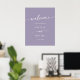 Cette enseigne d'accueil boho chic lavande pourpre do-it-yourself mariage est parfaite pour un mariage minimaliste. Le design bohème moderne et coloré et pourpre présente une calligraphie rustique simple au style unique mais classique. Personnalisez votre signe de mariage d'accueil imprimable avec les noms du couple et la date. Choisissez soit une affiche d'accueil imprimée, soit un téléchargement instantané imprimable que vous pouvez imprimer localement en tant que projet do-it-yourself.