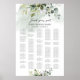 Boho verdure feuillage alphabétique mariage satiné affiche de la carte de siège. Roses blush ©