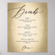 Menu de boissons en écriture calligraphique noire élégante sur faux papier doré et panneau de bar de réception de mariage "Cheers".