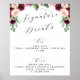 Pancarte de boissons de mariage florales rose et bordeaux avec texte personnalisé - avec les mots "boissons spéciales à lui et à elle" écrits dans une belle police de calligraphie fantaisie. Un design élégant, chic et pourtant simple dans une police noire et une couleur de fond que vous choisissez. Cliquez simplement sur le lien "personnaliser davantage", affiché sous la zone de personnalisation du texte à droite, et choisissez votre couleur de fond personnalisée. Ce modèle de pancarte permet de créer rapidement et facilement des ajouts époustouflants à votre décoration de mariage. Décoration, pancartes et papeterie complémentaires disponibles dans ma boutique et ma collection ci-dessous. Si vous avez besoin de quelque chose de conçu qui n'est pas déjà disponible, veuillez m'envoyer un message sur Zazzle.