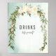 Boissons panneau de table pour vos invités pour la douche d'arrosage bébé. Elégant spray à fleurs de rose blanche avec arrière - plan d'aquarelle verte.