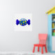 Un bonbon très coloré dans un emballage bleu. Ce design semble vraiment efficace sur cette affiche