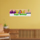 Poster de la bannière de la fête des dragons d'anniversaire heureux Imprimer. Une crête de dragon de dessin animé et un monde de dragon avec montagnes et château et dragons respirant le feu volant dans le paysage du ciel avec le texte entièrement personnalisable "Joyeux anniversaire !" affiche pleine couleur bannière. Cette affiche super cool de fête de dragon pour enfants est entièrement personnalisable, ajoutez vos textes et images! Une décoration ou un cadeau pour le grand petit fan de dragon !