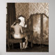 Cette scène de boudoir romantique présente une belle femme assise dans une commode, se fixant les cheveux. Le rendu numérique 3D original, créé en DAZ par l'artiste Jayne Wilson, a été sépia pour lui donner une sensation vintage.