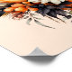Poster avec un bouquet de fleurs élégant mais goth. Composé de tulipes oranges, marguerites jaunes, feuilles et sprigs gris et quelques accents de baies oranges.