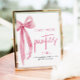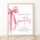 The Blush Pink Bow : She's Tying the Knot Drop Your Panties Here Game Sign est un ajout ludique et humoristique à toute fête de bachelorette ou douche nuptiale. Ce panneau est généralement placé près d'une zone désignée où les invités peuvent apporter leur culotte dans le cadre d'un jeu amusant. Avec son design d'arc rose vif et son message enjoué, ce panneau donne le ton d'un événement léger et mémorable. Qu'il soit exposé sur un mur ou une table, il ajoute une touche de fantaisie et d'excitation à la célébration, encourageant les invités à participer et à s'amuser.