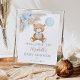 Nous pouvons attendre prématurément l'arrivée du bébé ! L'adorable enseigne d'accueil à thème de cet ours en peluche saura mettre un sourire sur le visage de vos invités ! Les tons doux bleu, marron et beige rendent ce design parfait pour un baby shower garçon. Personnalisez les étiquettes avec vos détails et si vous voulez réorganiser le style et le placement du texte, veuillez appuyer sur le bouton "Cliquez pour customiser plus loin".