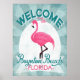 Boynton Beach Florida rose flamingo. Dans le style d'affiches de voyage vintage, il dit "Welcome To Boynton Beach, Florida" en rose, blanc et vert menthe turquoise.