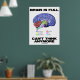 Montrez votre côté psychique philosophique désagréable avec une dose d'attitude anatomique avec cette affiche montrant les différentes parties du cerveau avec ce qui suit disant que beaucoup d'entre nous ont vécu à un moment ou un autre : "Le cerveau est plein ne peut plus penser". Poster classique d'attitude geek braineuse !