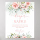 Plaque de tombola fleurie rose feuillage rose. Éléments correspondants disponibles.