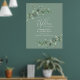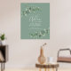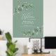 Belle délicate feuillage d'eucalyptus mariage accueil design signe de bienvenue. Moderne élégant sur tendance sauge vert, noir, bleu marine et blanc élégant collection contemporaine rustique. Idéal pour les mariages de printemps, d'été, d'automne ou d'hiver.