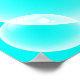 De mignonnes bulles d'air flottantes transparentes se dressent contre un arrière - plan bleu pâle. Image disponible sur divers cadeaux et produits.