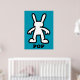 Apportez un coup de pop graphique à votre mur. Cette silhouette de lapin blanc minimal, encadrée par un contour noir gras sur turquoise profond, offre un poinçon visuel instantané pour les studios, les bureaux, les salles de jeux et les espaces de vie modernes. Des formes propres, un fort contraste et un caractère amical en font une pièce facile à comprendre. Imprimé avec une couleur riche pour une finition de style galerie.