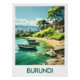 Escape to Lake Tanganyika with this Burundi poster. Peaceful boats float on turquoise waters, surrounded by lush hills and traditional houses. A soothing scene, perfect for natural and serene wall art.