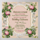 Un jardin victorien Bush vert avec roses roses et crème - affiche mariage en dentelle blanche