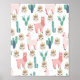 Poster murale en cactus vert et lama rose mignonne
