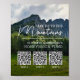 Ce panneau de registre de mariage alternatif "Cagnotte de lune de miel" comporte la légende "Emmène-nous dans les montagnes" dans des polices blanches modernes sur un fond d'image de paysage montagneux. Modifiez facilement la photo de fond avec celle de votre choix et ajoutez jusqu'à 3 codes QR pour inviter vos invités à contribuer à vos vacances de rêve en envoyant des dons en espèces à votre application de paiement avec leur téléphone mobile.