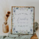 Poster du jeu de douche nuptiale 'Guess How Many' pour une douche nuptiale hivernale avec cadre floral bleu poussiéreux et police de caractères élégante.