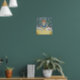 Bubba kitty dans un peignoir en peluche, à une petite table avec une joyeuse nappe jaune. Il prend du café (ou du thé) dans un set miniature en porcelaine. Cela peut être customisé. Il peut être mignon dans une salle de petit-déjeuner ou dans la salle de classe ou la salle de classe d'un enfant.