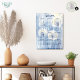 Le calendrier présente des fleurs de pissenlit à divers stades de floraison dans un style vintage/rustique. Les fleurs sont représentées dans des nuances de bleu, de blanc et de jaune et sont placées sur un fond bleu clair.