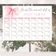 Élégant calendrier "Devinez la date prévue" pour une baby shower Coquette Rose à ruban, avec des rubans roses délicats et des détails élégants. Activité parfaite pour que les invités prédisent l'arrivée du bébé tout en ajoutant une touche personnalisée et stylée à la décoration de votre célébration.