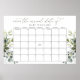 Modifiez les jours en fonction du mois dont vous avez besoin. ⚠️ Allez sur le lien "cliquez pour personnaliser davantage" pour déplacer la date d'échéance à un jour différent. Les invités signent le calendrier avec leurs prédictions pour l'anniversaire du bébé. L'invité qui devine la date de naissance (ou la plus proche) gagne le jeu ! Consultez notre collection pour des jeux assortis, des invitations, des pancartes, et plus encore !