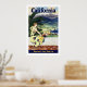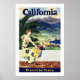Affiche vintage de voyage ferroviaire faisant la promotion d'un voyage en Californie en train.