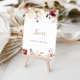 Cette calligraphie graceful floral favors signe est parfait pour une mariage moderne ou douche nuptiale. Le design présente une aquarelle dainty blanche, bordeaux, roses roses roses et feuilles d'automne.