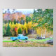 Cette affiche présente un camion bleu antique sur une ferme du Vermont en automne. Idéal pour une mancave.