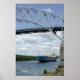 Des navires et des barges traversent le canal du Cap Cod et sous les ponts Bourne et Sagamore. Aujourd'hui, un pétrolier fait son chemin tandis que le pont semble recueillir les nuages fluides.