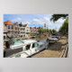 Vue du canal Klein Diep et des bâtiments riverains depuis le Vleesmarkt à Dokkum en Frise dans la Pays-Bas.