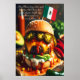 Satisfaites vos envies avec ce hamburger Cancun Chipotle Crave. Une juteuse pâte de boeuf épicée, grillée à la perfection, est laquée de fromage d'Oaxaca fondu, de jalapeños rôtis, une poupée de chipotle mayo, et d'avocat frais. Le tout niché à l'intérieur d'un petit pain épicé de maïs. Un drapeau mexicain miniature apporte une touche festive, tandis qu'un arrière - plan flou de piments et de cilantro frais vient compléter cette expérience culinaire mexicaine authentique.
