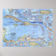 Poster " Caraïbes : 1962/à ce jour - carte des Antilles .