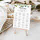 Ce tableau alphabétique feuille vert tropical est parfait pour un mariage moderne. Le design présente de beaux feuilles verts peints à la main, ornant un cadre géométrique doré. Ce panneau peut être utilisé pour organiser vos invités par ordre alphabétique ou par numéro de table. Il dispose de suffisamment d'espace pour accueillir environ 150 mariages. Faites de la place pour plus (ou moins) en cliquant sur le bouton personnaliser et augmentez ou diminuez la taille de la police. Personnalisez ce panneau avec les noms de la mariée et du marié et la date.