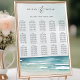La carte des sièges mariages incarne la sérénité du rivage avec sa moitié supérieure dédiée aux aménagements élégants des sièges d'invités. En contrebas se déroule une scène de plage aquarelle paisible, évoquant l'ambiance calme de l'été au bord de la mer. Les teintes apaisantes du bleu et du vert peignent les eaux tranquilles et la douce ruée des vagues, mêlant harmonieusement l'aspect fonctionnel de la direction du client à l'esthétique thématique d'une célébration au bord de la plage. Ce tableau de sièges n'est pas seulement un guide pour les clients, mais aussi une oeuvre d'art harmonieuse, contribuant aux noces sur le thème de la plage.