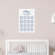 Cette affiche simple en calligraphie bleu marine mariage est parfaite pour un mariage élégant. Le design blanc et bleu présente une typographie rustique chic et un coeur romantique. Ce poster mariage offre suffisamment de place pour accueillir jusqu'à 16 tables (160 convives). En plus du placement de chaque invité, personnalisez ce panneau avec les noms de la mariée et du marié et la date du mariage.