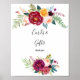 Ce panneau de cartes et cadeaux d'été couleur aquarelle est parfait pour une douche mariage ou nuptiale. Ce design floral merveilleusement créatif présente des fleurs de pivoine rouge foncé, rousses, bordeaux et violets inspirant classe et beauté naturelle. Faites la ligne de texte au bas du panneau vous-même en incluant la date, les noms de la mariée et du marié ou un message court comme "Merci". Ce signe peut compléter un mariage, un événement ou une fête.