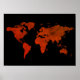 Carte du monde brun rouge sur arrière - plan noir