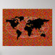 Carte noire graphique du monde avec motif pois couleur dans l'arrière - plan