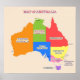 Décorez votre chambre ou votre salle de classe avec cette carte multicolore qui présente les états et territoires de l'Australie contre un arrière - plan blanc cassé. Le titre, Carte de l'Australie, apparaît en haut de cette affiche colorée.