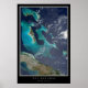 Turquoise, vert foncé, bleu clair, et couleurs saphir vives se mélangent dans les eaux entourant les Bahamas pour se démarquer du bleu profond de l'océan Atlantique. Comme les 700 îles et îlots se trouvent sur des plateaux sous-marins (appelés "bancs"), les eaux des Bahamas sont très peu profondes, allant d'à peine couvrant le fond de l'océan à 25 mètres de profondeur. Provenant du plus grand producteur américain d'imagerie satellite à spectre multispectral LANDSAT 8 et ASTER triée sur le volet et traitée sur mesure, fournie par la US Geological Survey et la NASA.