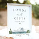 Ce modèle de panneau pour cartes et cadeaux présente une peinture à l'aquarelle de style bohème d'un lac de montagne et une police de caractères calligraphique élégante. Ce design rustique est l'ajout parfait à tout événement.