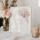 Cartes et affiche de cadeaux rose pastel et neutre doux avec un arrangement floral boho aquarelle avec gazon pampa blanc et rose, roses et feuilles de palmiers.