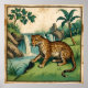Un léopard aux lignes simples et une touche de jaune et de marron, mettant l'accent sur l'élégance dans un contexte artistique médiéval.
