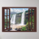 Belle vue sur les cascades, fausse scène de fenêtre, pour un mur de bureau sans fenêtre. Illusion d'optique réaliste et amusante affiche pittoresque pour un bureau ou un mur d'étude.