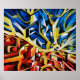Tableau Abstrait de Clayton Kashuba. art Abstrait avec des couleurs rouge, noir, jaune, blanc et bleu.