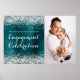 Poster Célébration de fiançailles Bleu sarcelle argenté s