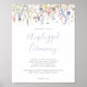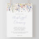 Cette affiche de cérémonie débranchée de fleur sauvage multicolore d'été est parfaite pour une douche mariage moderne ou nuptiale. Le design se compose de fleurs rose aquarelle, rousse, violette, rouge, bordeaux, jaunes, blanches et de papillons à la verdure soigneusement entassés dans d'élégants bouquets floraux.